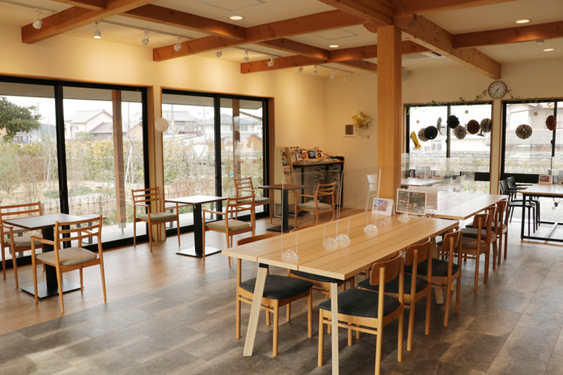 お隣の玄甲舎の庭園に広がる四季折々の風景とともに、玉城町のブランド豚「玉城豚」を使ったメニューやサンドイッチ、スイーツなどが楽しめるカフェ。玄甲舎見学の後の一休みにもおすすめ。店内は全面バリアフリー、子どもイスなどもあり、小さな子どもからお年寄りまで訪れやすいのもうれしい!ワークショップやイベント開催用に、スペースの貸し出しも行っている。